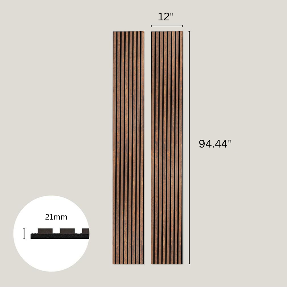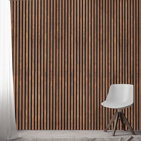 Our Oxide Brown Acoustic Slat wood panel exudes timeless elegance with its rich, warm hues and natural wood grain patterns. Each panel measures 7.87 Ft x 1 Ft for easy handling and installation. Oxide Brown wood panel is an ideal choice for interior applications, such as accent walls, ceilings, or focal points in living rooms, bedrooms, offices, and more. Its warm, inviting color and sustainable qualities make it a perfect complement to nature-inspired themes or Eco-conscious designs.