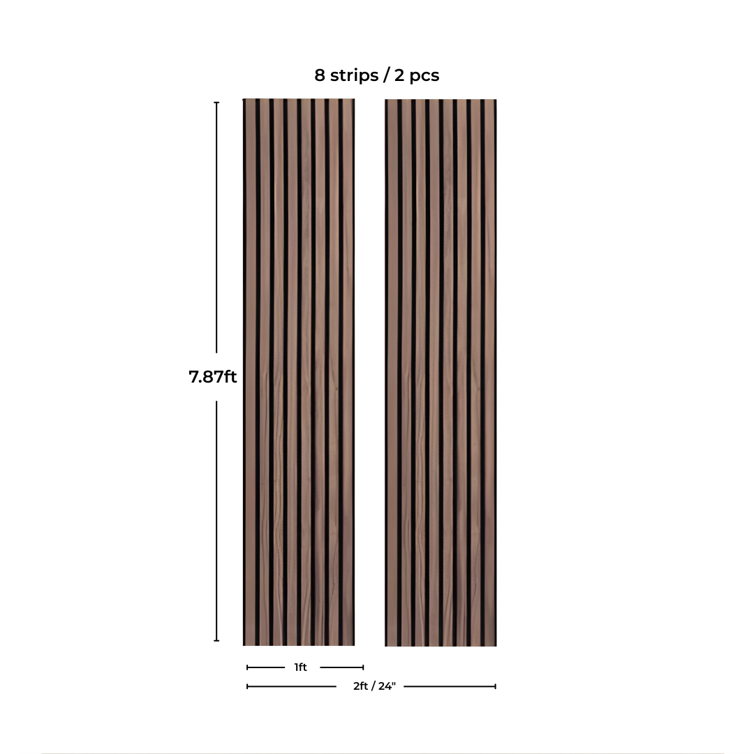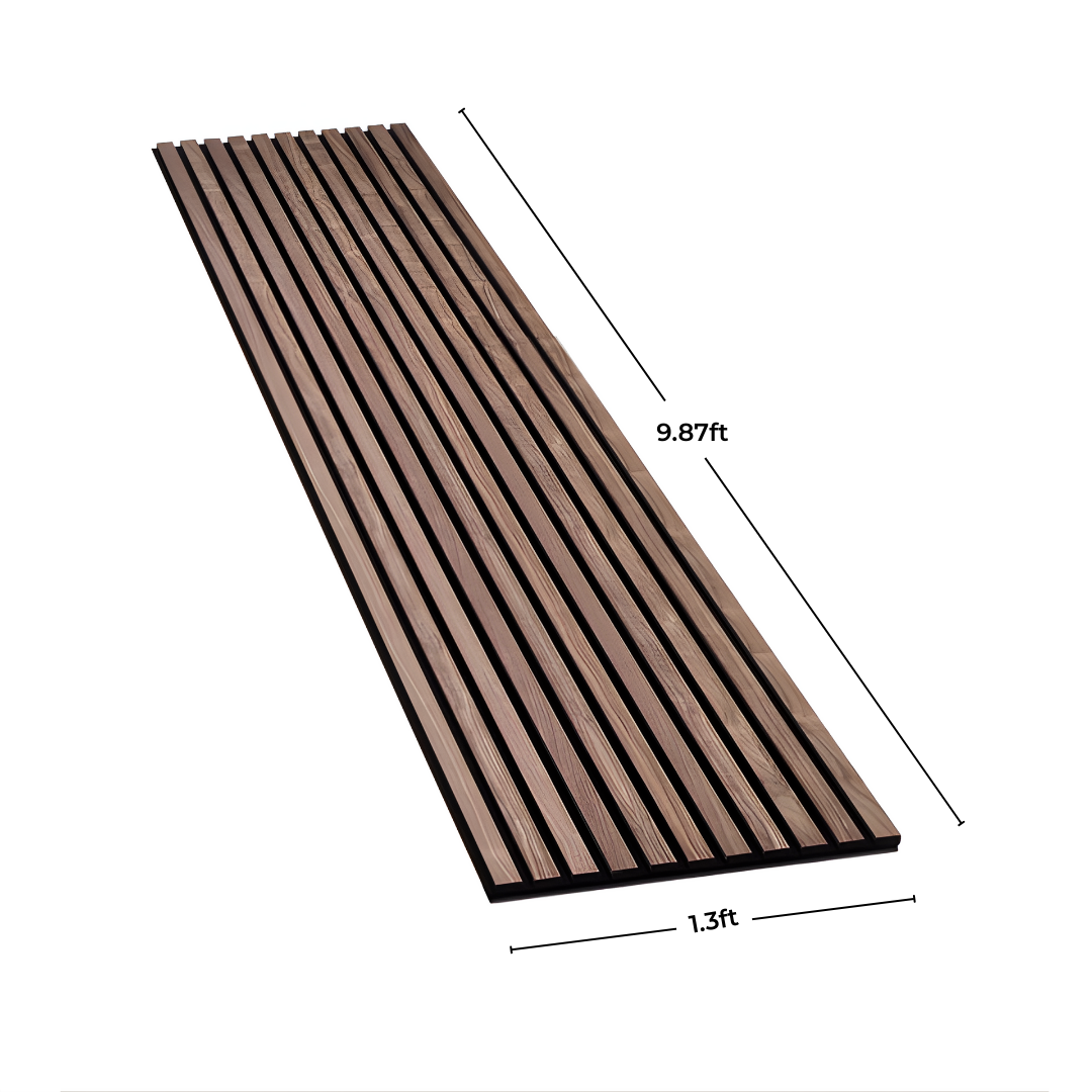 This product will give any room depth with its range of warm walnut acoustic slat on a felt backing. Use these panels to add a wow factor to a variety of home and commercial projects because they are complementary to a variety of interior styles. The panels are simply trimmed on-site, making it possible to create specific combinations. Each slat is firmly fastened to the supply felt backing and each panel is delivered completely built and prepared for installation. The space between each slat is 10mm and it has 21mm thickness.